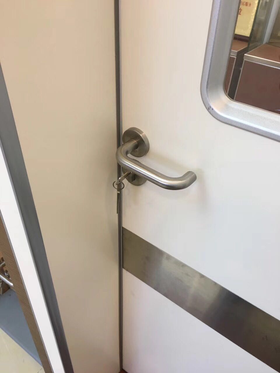 醫(yī)院專用門不銹鋼防撞帶分別安裝在門扇的底部距地面200mm內、距地面600mm內、距地面1000mm內、為容易被手推車碰撞、刮傷的部位。豪森醫(yī)院專用門在門扇此距離安裝正宗304#不銹鋼防撞帶,完全避免了醫(yī)用手推車進出時對門扇的碰撞后出現(xiàn)的掉漆、掉木屑等現(xiàn)象,了醫(yī)院專用門門扇的美觀。